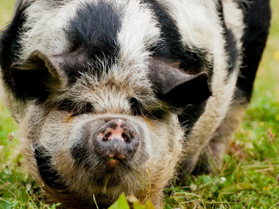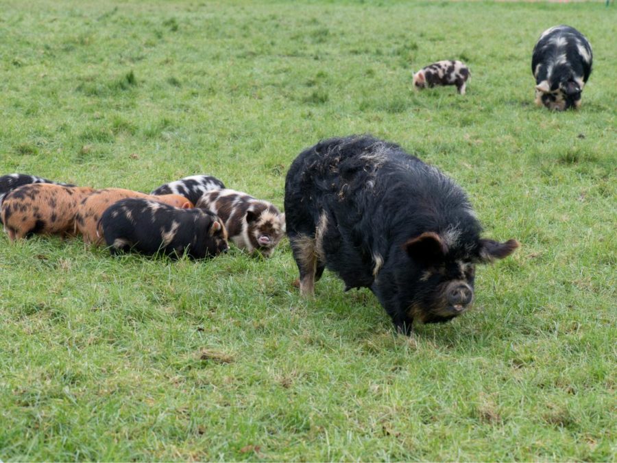 Because of their shorter upturned snouts, kunekune pigs are more likely to graze (eat the grass) and not root up the soil like pretty much all other pigs do.
