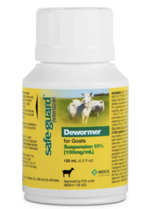 "Fenbendazole(name brand Safeguard)– for tapeworms, whipworms, ascarids. Safeguard for goats, 10% suspension (100 mg/ml) is an excellent choice but does not treat mites or lice. Therefore, this is an excellent addition to ivermectin but should not be replaced. Dosing with this oral suspension is easy. Mix 0.1 ml or cc per 10 lbs of body weight into food such as canned pumpkin or yogurt. This dose should be given once a day for three days in a row. If worms are suspected, repeat the 3-day dosing two weeks after the first. The regular schedule for Fenbendazole is every 4-6 months."